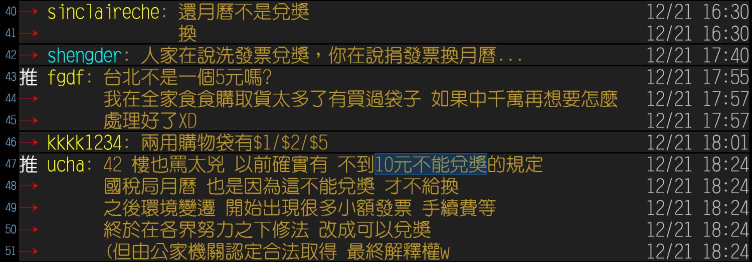 推 ucha: 42 樓也罵太兇 以前確實有 不到10元不能兌獎的規定 12/21 18:24