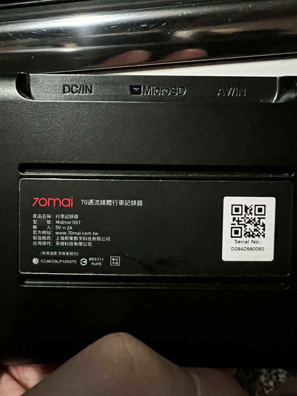 物品名稱:70mai D07前後行車記錄器