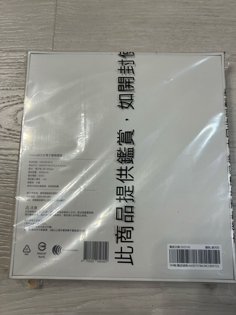【商品名稱】:momoBOOK 7 吋黑白電子書閱讀器 【商品狀態】:全新,外盒塑膠封膜未拆(贈品轉售) 【商品售價】:$2500 (誠可小議) 【交易方式】: 1. 面交:彰化市可 2. 寄送:提供 7-11 賣貨便 連結,貨到付款最安全 照片: https://i.mopix.cc/lAiBKU.jpg
