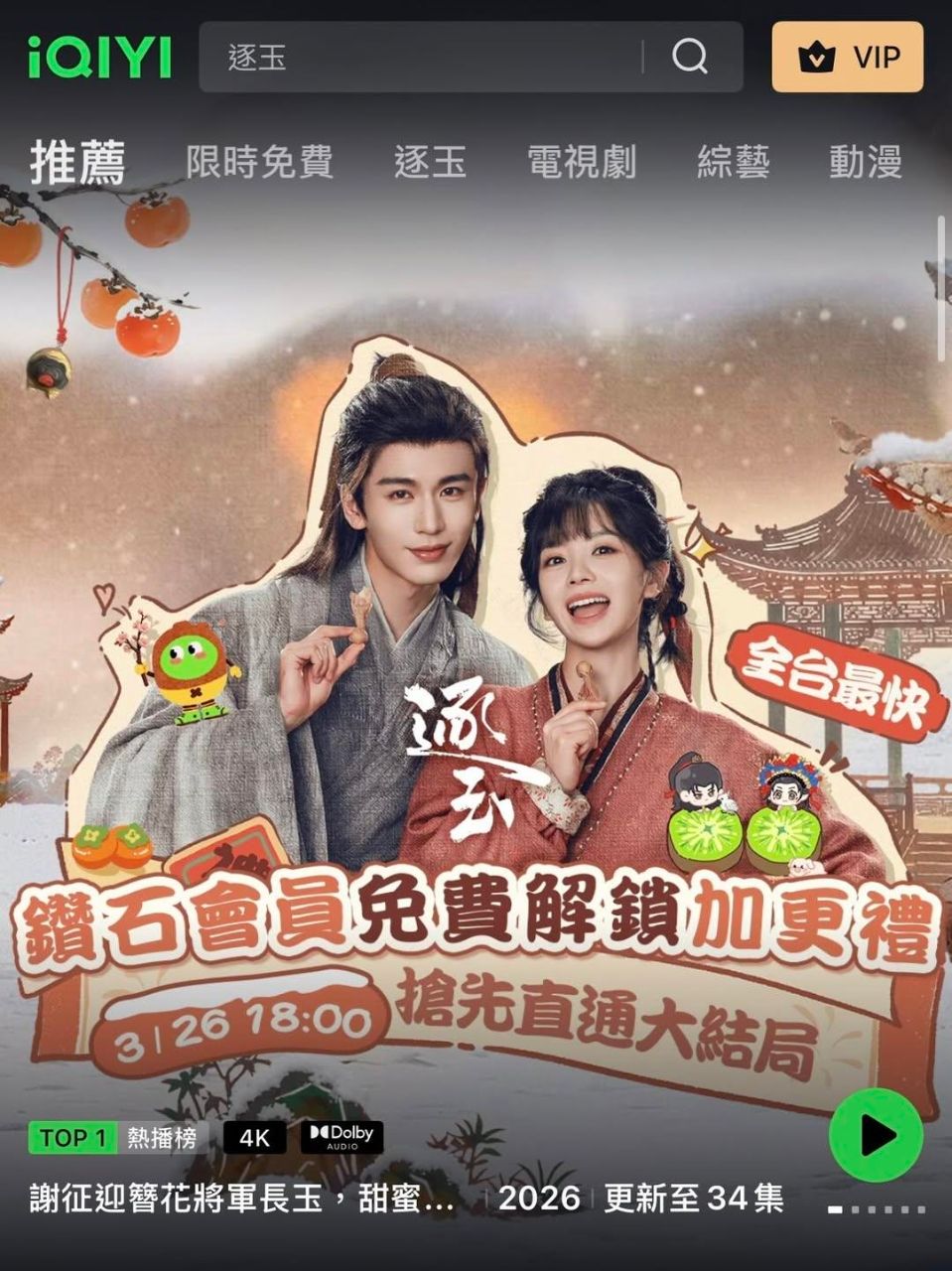 推 lovelandbird: 愛奇藝官博發布3/26開超點,騰訊應該同步吧? 剛好 03/25 13:14