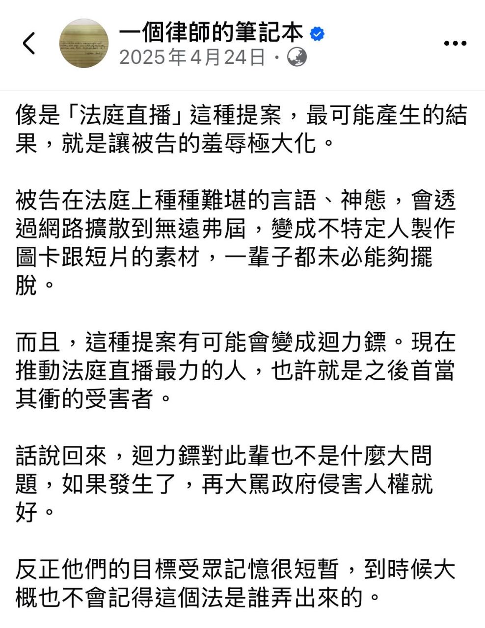 噓 ChineseTeam: 倒果為因用來反對法庭直播不是很聰明123.110.177.175 03/31 23:01