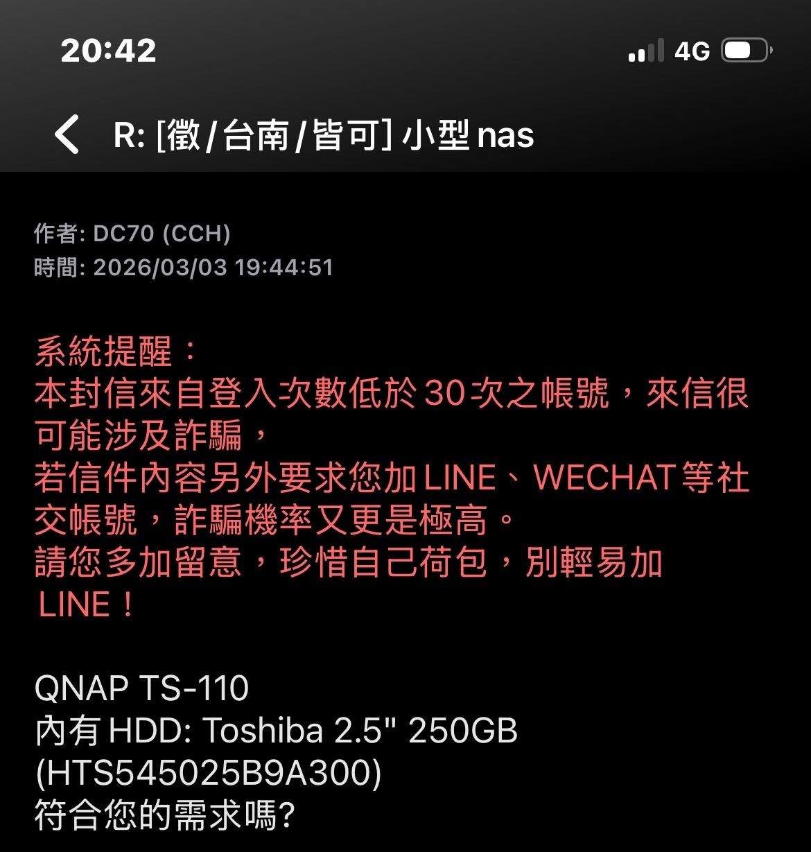 推 joeabu: 這位也疑似詐騙 刊登收物品也詳細面交 或 101.9.102.63 03/03 20:48