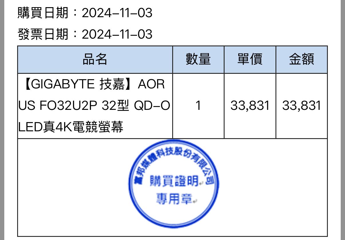 標題[賣/台北/皆可] 技嘉AORUS FO32U2P 4K 螢幕
