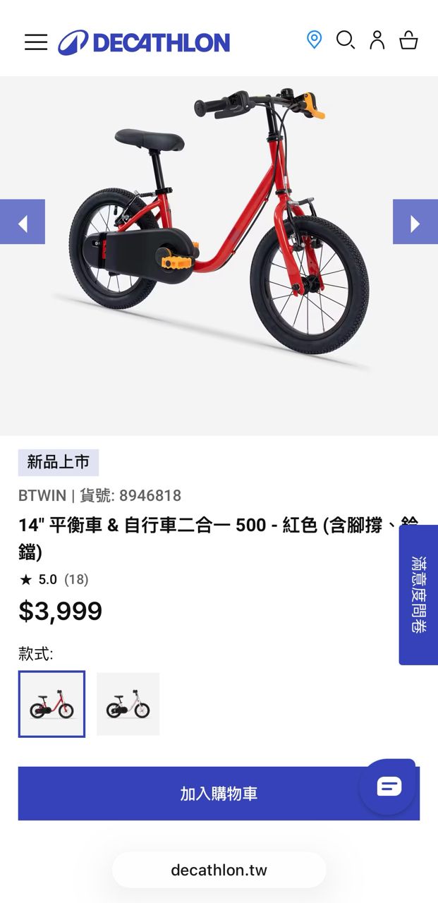 推 octsix30 : 售 迪卡儂14吋腳踏車 非常新 2600元 02/28 21:14