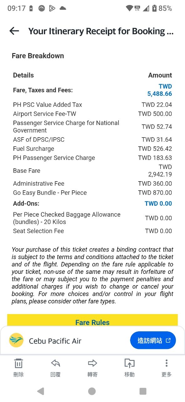 (如果沒有要入境,應該能行李直掛日本拿到宿霧太平洋航空的兩段登機證? 因為看到