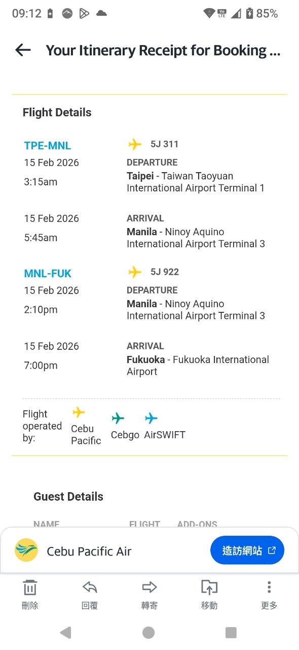 經馬尼拉轉機飛福岡在2/15小年夜價格