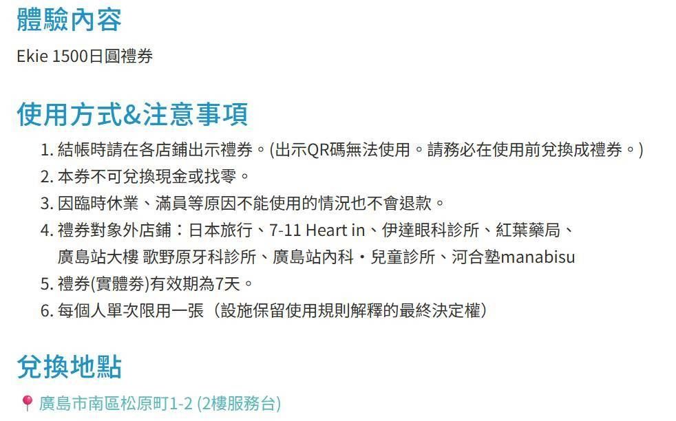回程回到廣島車站商場使用廣島樂享周遊券第一次,兌換到1500日圓的商場禮券