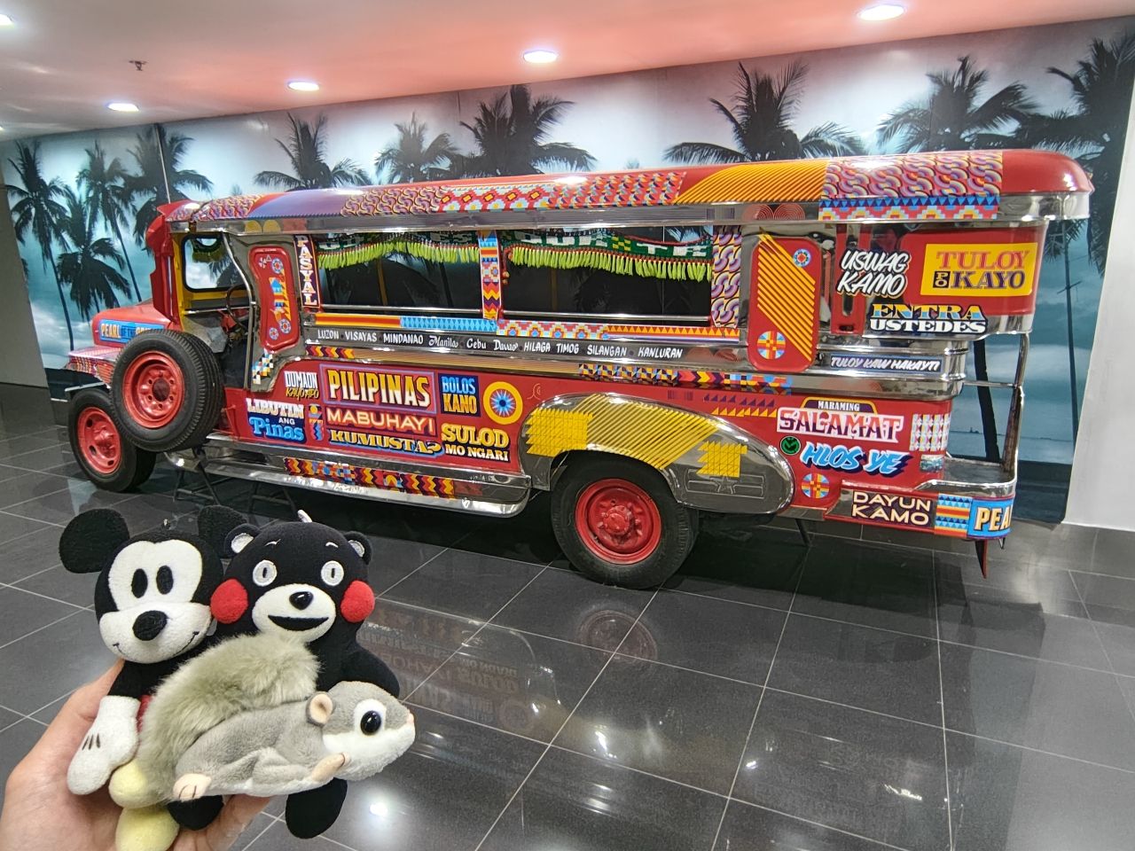 下機走往移民官的路上長廊就有菲律賓路上的吉普尼擺飾