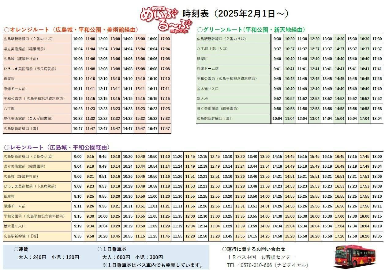 拿jr pass 搭免額外費用的meipuru~pu bus綠色路線回廣島車站(單次240日圓)