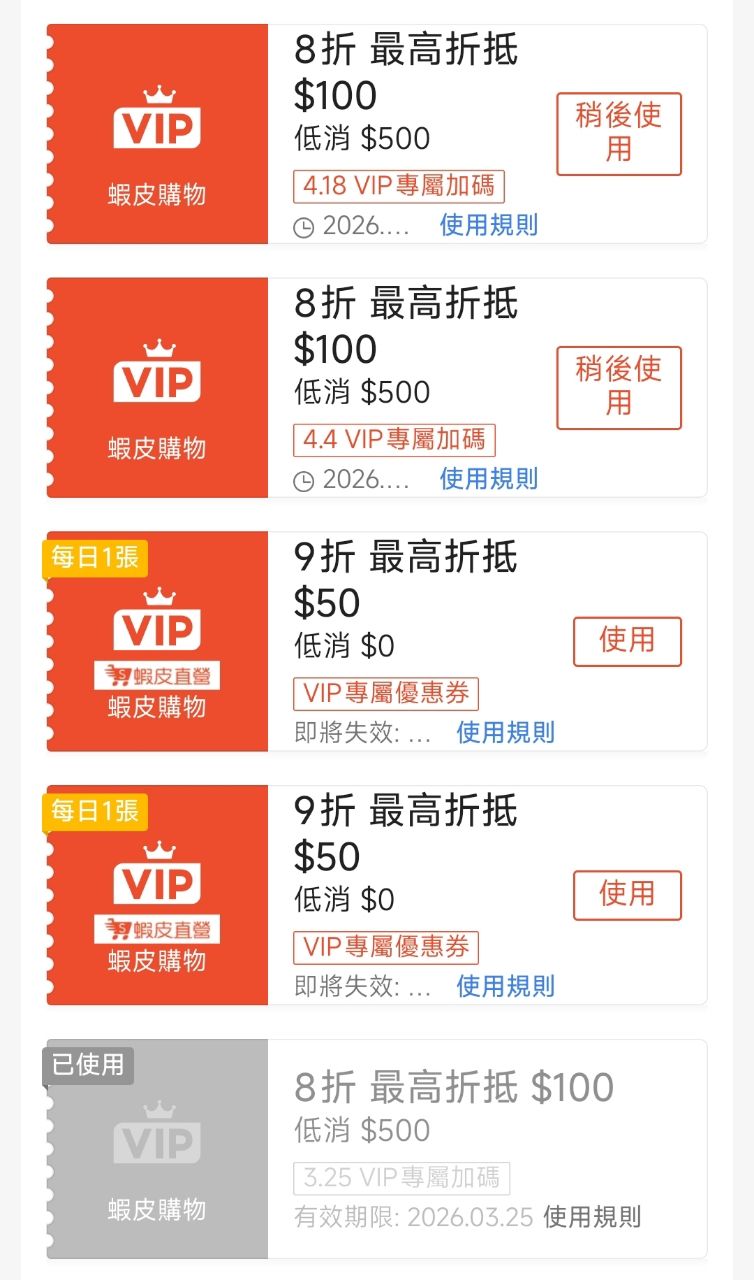 推 TZUYIC: 蝦皮VIP優惠變差了,月初那張8折,之前都 223.23.20.145 03/25 01:55