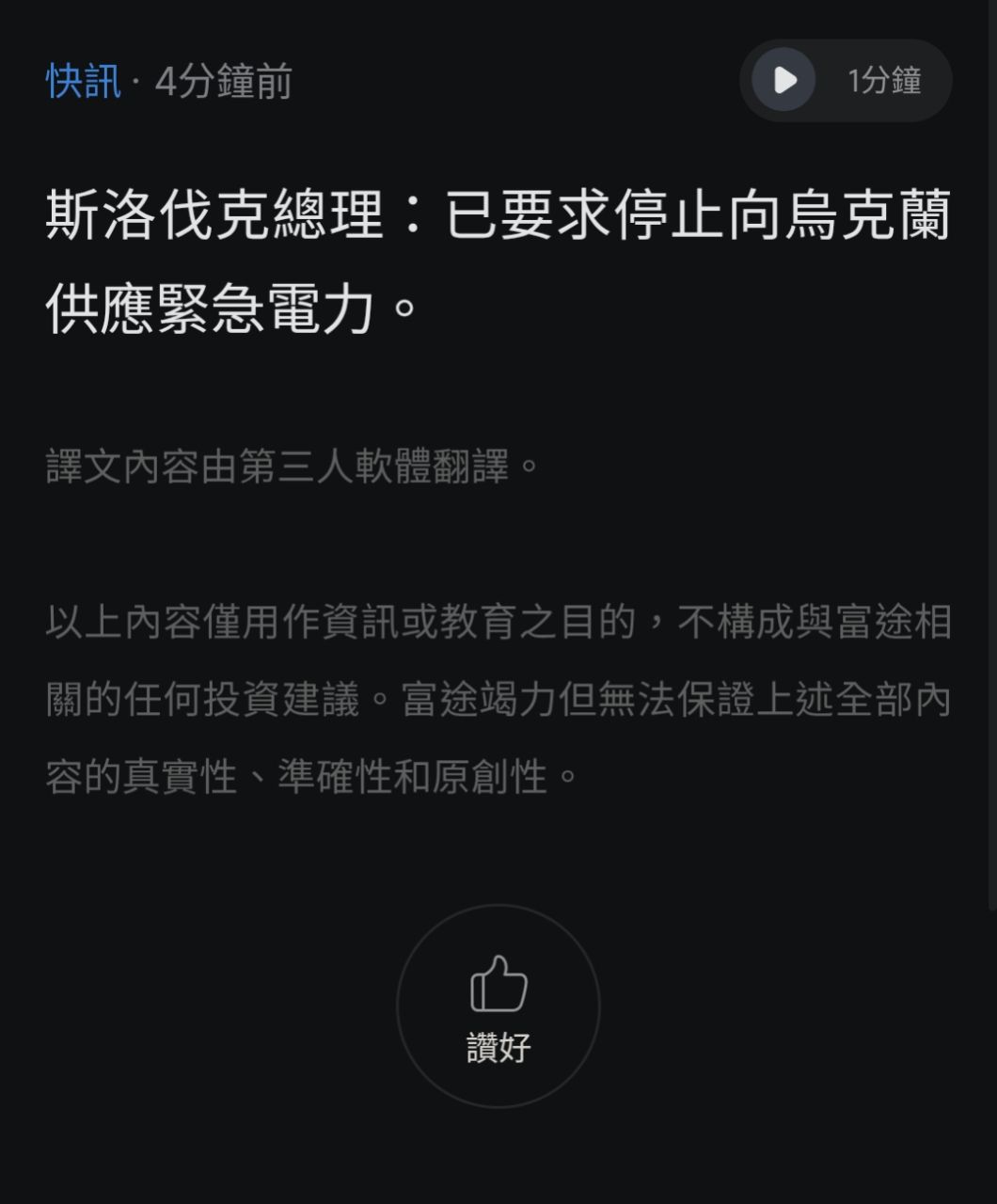 peterlee97 : 剛剛看到訊息 好像斯洛伐克暫停對老烏供電 02/24 00:00