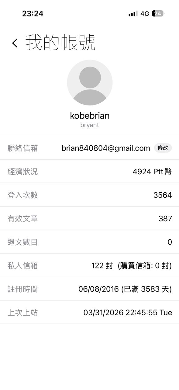 kobebrian : 沒差啦XD 信箱也不是什麼重要資訊 03/31 23:28