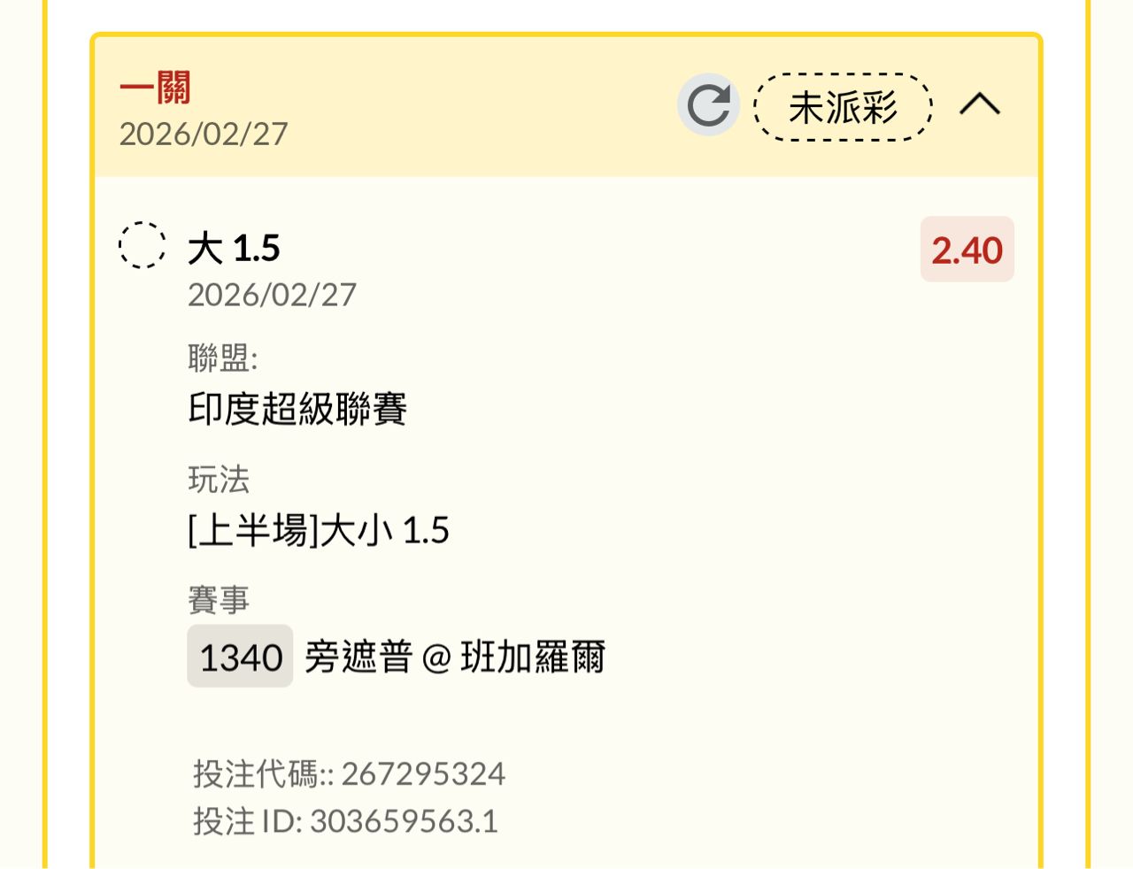 → rafaelfala: 2.5大賠率夠了,可以進球囉 223.141.75.116 02/27 23:33