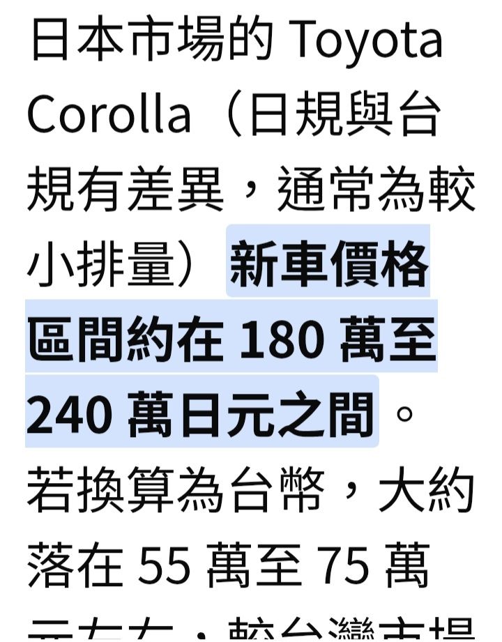 噓 sammy98: 蛤 你知道日本最便宜的Corolla 是油電車嗎 03/05 06:12