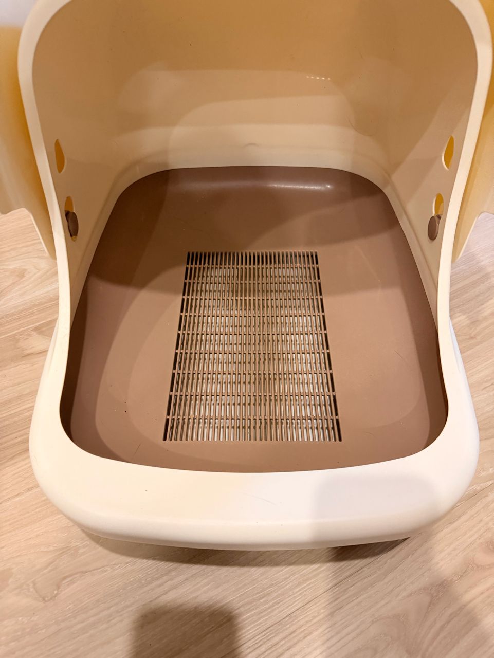 物品名稱: Unicharm Pet 雙層貓砂盆 尺寸大小與規格數量:1 到期日:無 商品描述: 二手,已清洗乾淨 照片: https://i.mopix.cc/34PSr9.jpg