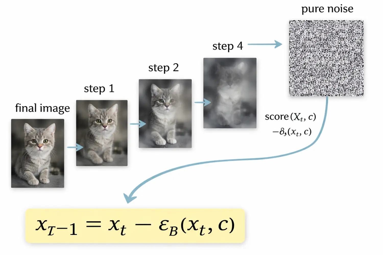 他學會如何利用這個向量對這張圖片加噪到完全模糊無法分辨