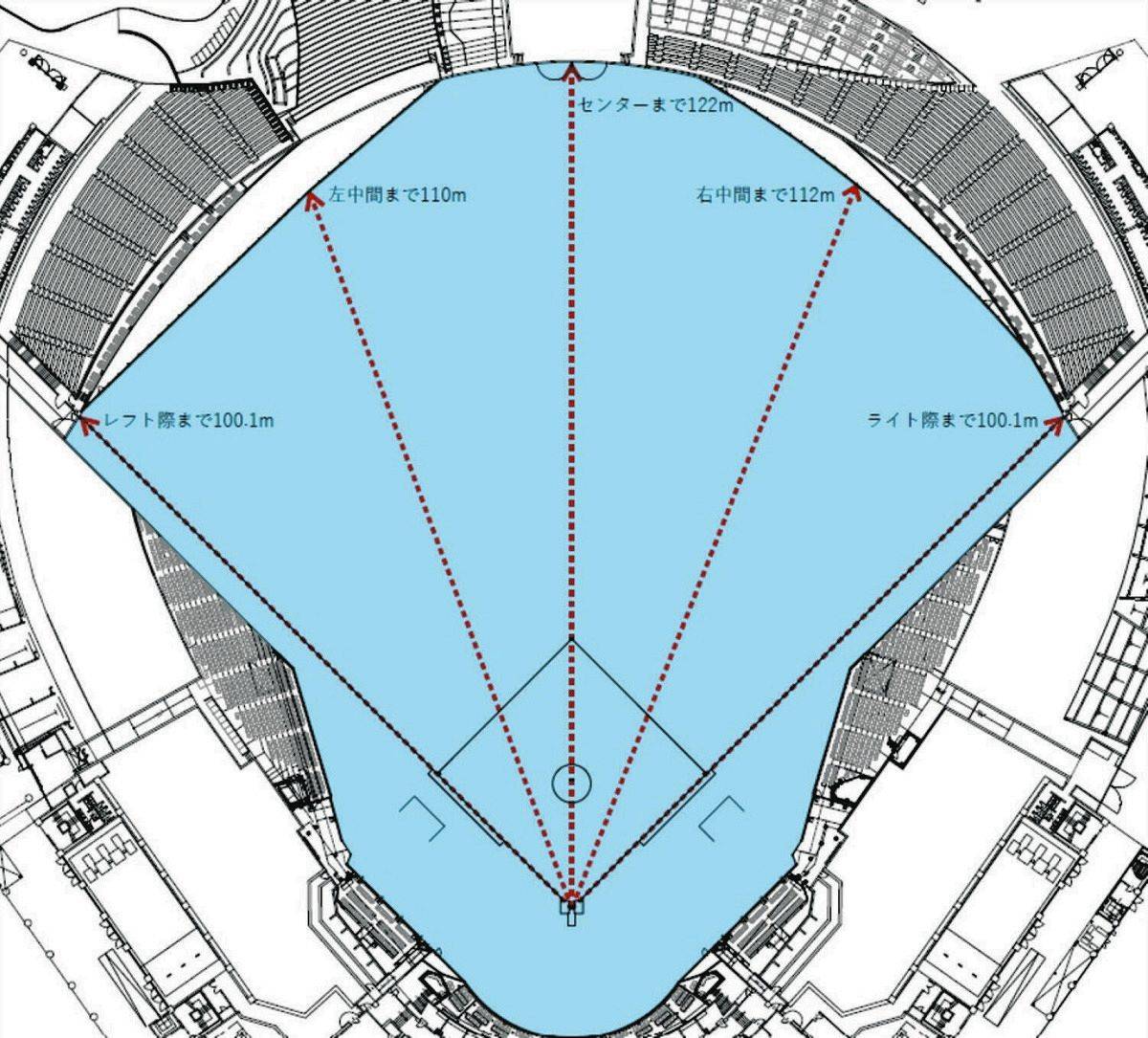 左中外野從116M改到110M,縮短了6M,牆面全直線