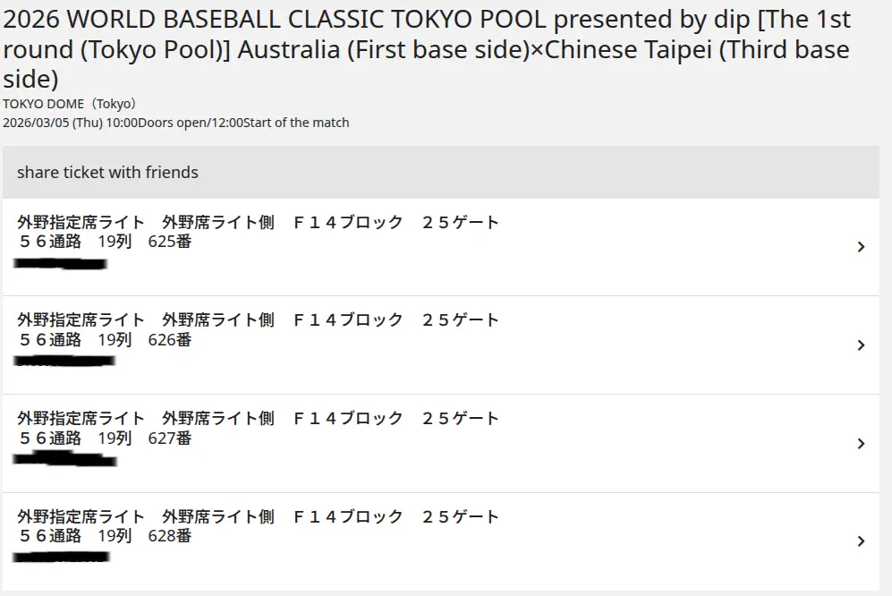 已售出 票券日期:3/5 座位編號:外野席ライト側 票券原價:日元2800x3 欲售金額:日元2800x3 票券照片:https://i.meee.com.tw/JCd10zl.png
