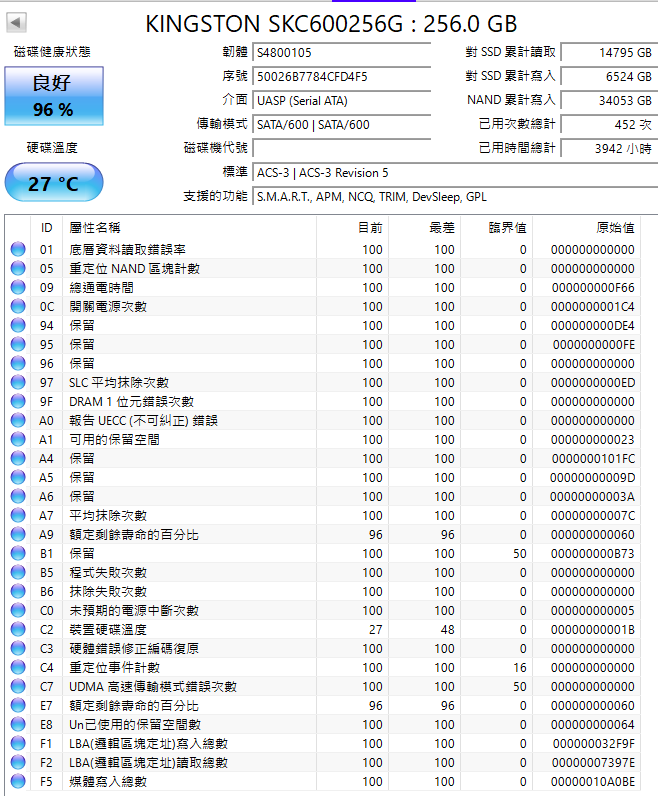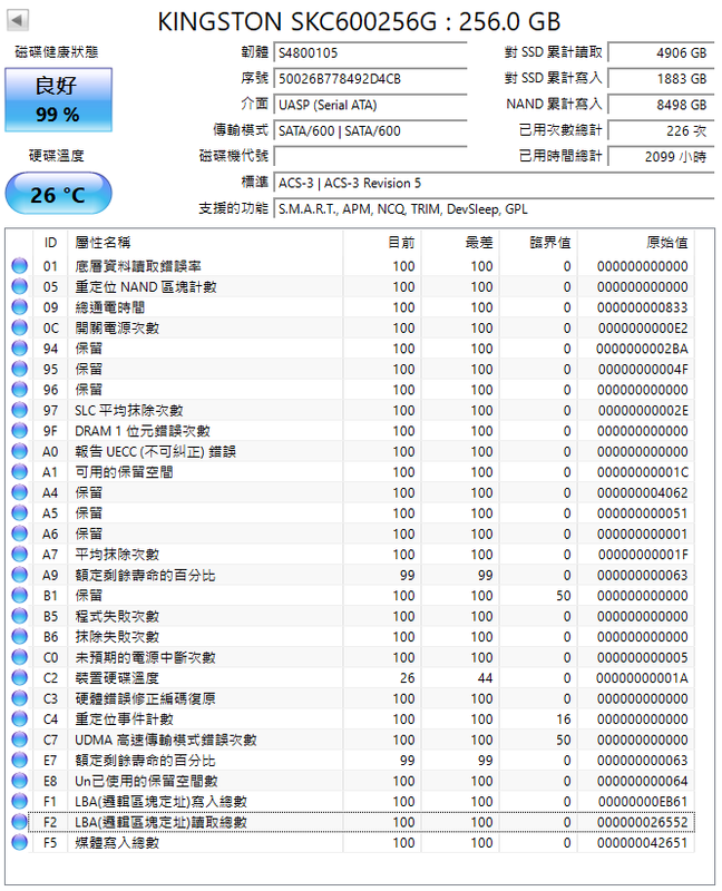 1.kc600 256G 2.5吋 SATA SSD(有2)
