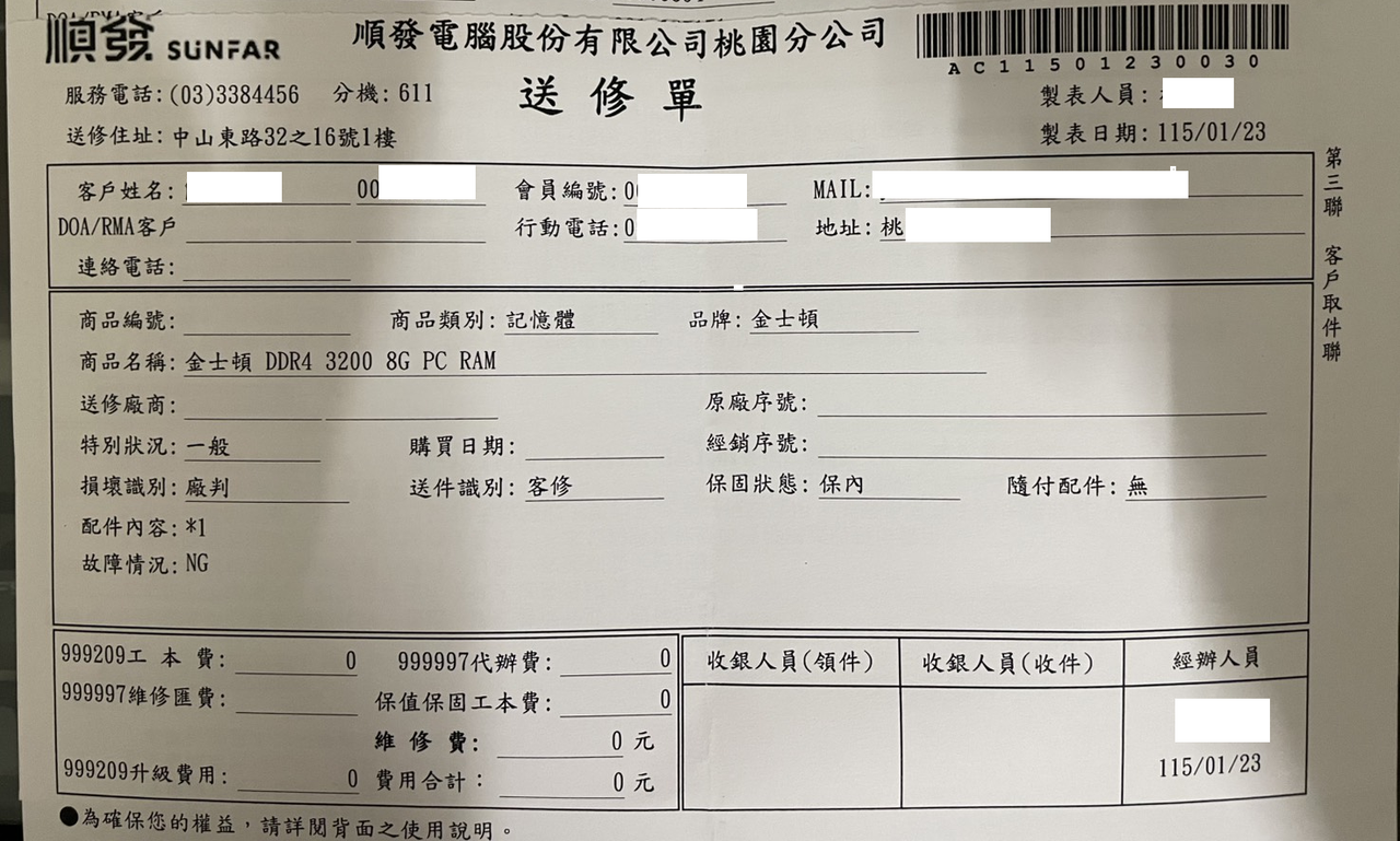 1.出廠為2213跟2232 應為保內,但金士頓無網站可查,請視為過保