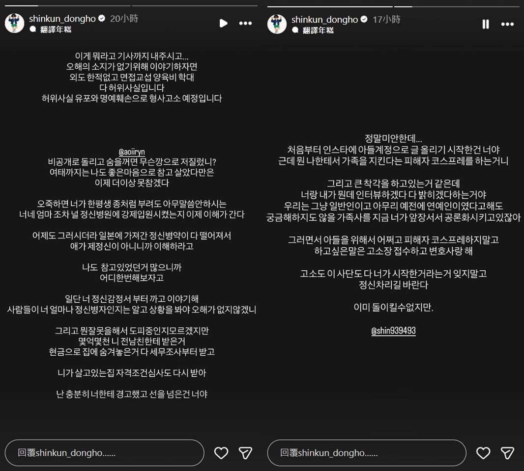 A某於25日在社群發出長文,點名東澔在孩子面前說她壞話,並指控他扭曲過往事實。她