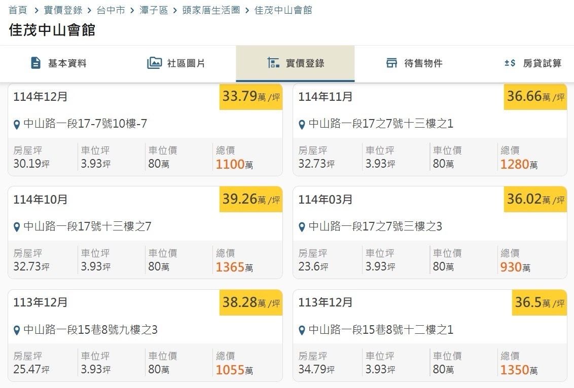 本物件附近地址實價登錄 :