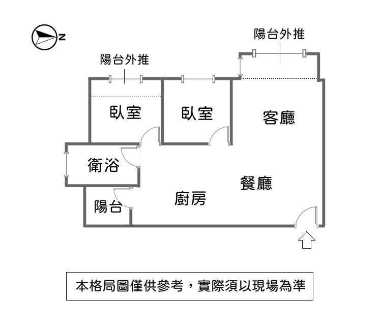格局 : 2 房 2 廳 1 衛 1 陽台